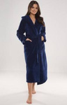 Welurowy długi szlafrok męski De Lafense z satynowym obłożeniem - 773 granatowy