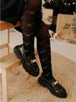 Czarne pończochy do paska Fiore DESTIN 20 DEN w czerwone kwiaty na udzie