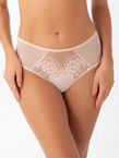 Półusztywniany beżowy biustonosz Gorsenia K647 ALICANTE z odciążającymi ramiączkami.