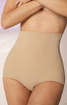 Beżowe figi z wysokim stanem Babell 2008 podszyte mieniącą się złotą nitką.