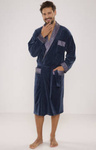 Welurowy długi szlafrok męski De Lafense z satynowym obłożeniem - 773 granatowy
