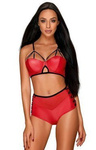 Czerwony "skórzany" biustonosz Leatheria - komplet 2-częściowy z figami