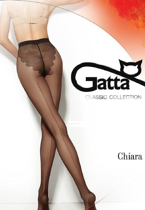 - Seksowne rajstopy Gatta Chiara z wyhaftowanym szwem, wykonane z przędzy typu lycra oplatana, przezroczyste, matowe, z ozdobną częścią majteczkową typu bikini.
