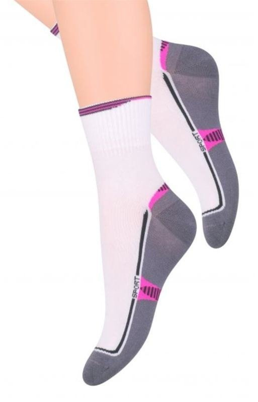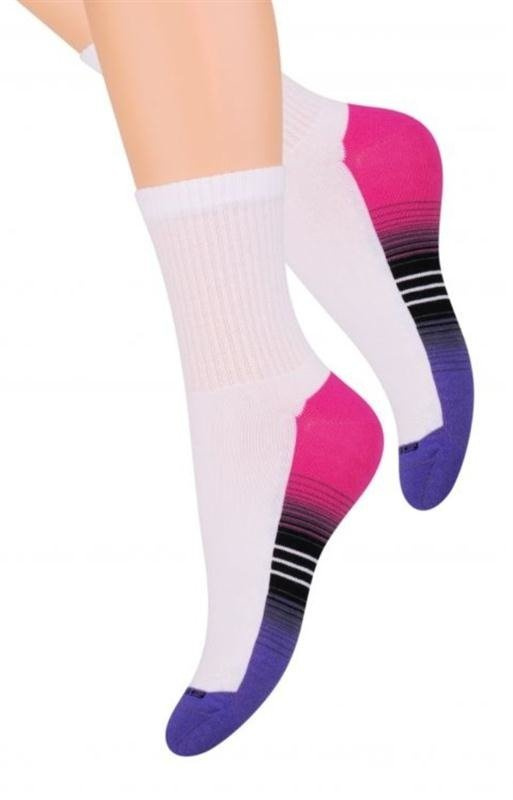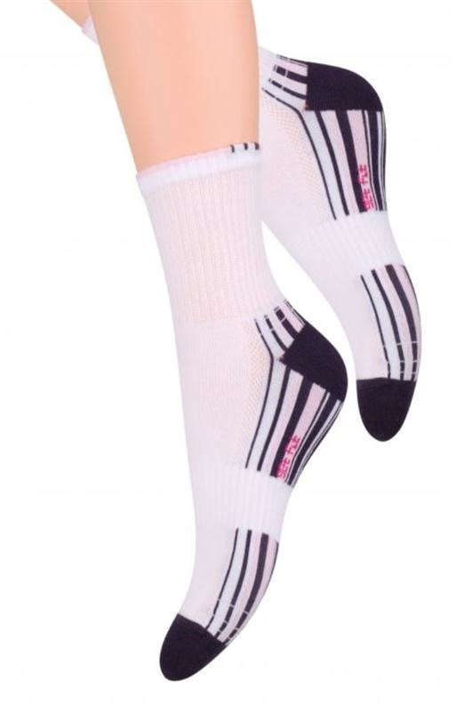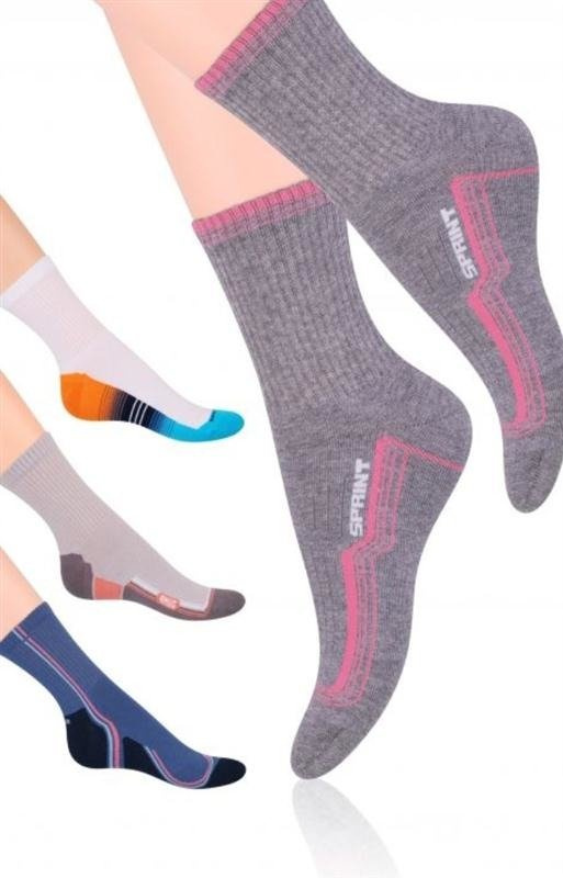 - Sportowe bawełniane damskie skarpety z wysokim ściągaczem Steven 026. Dostępne w szerokiej gamie kolorów i wzorów , w ciemniejszej tonacji kolorystycznej. Komfortowe i miękkie, idealne także do codziennego użytku.