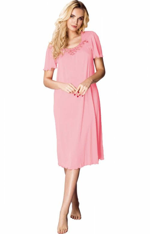 Koszula damska Mewa / 4112Ten model z krótkim rękawem, pozwoli każdej kobiecie poczuć się wyjątkowo. Motywem zdobniczym jest efektowna aplikacja przy dekolcie. Wykonana z jedwabiu wiskozowego Vistex- przewiewnego, antyalergicznego, higroskopijnego (odprowadza wilgoć na zewnątrz). Skład surowcowy: 100% VistexDługa koszula nocna Mewa 4112 Beatriz to idealny wybór dla kobiet ceniących sobie połączenie wygody oraz elegancji. Wykonana z jedwabiu wiskozowego Vistex, ta koszula nocna w kolorze koralowym zapewnia uczucie luksusu na skórze. Krótki rękaw i gładki materiał sprawiają, że jest ona doskonała na letnie noce, a także jako koszula nocna dla puszystych, dzięki dostępnym dużym rozmiarom. Okrągły dekolt dodaje subtelności, a długość sukienki sprawia, że jest to idealna bielizna damska do spania, w której każda kobieta poczuje się komfortowo i stylowo. Przekonaj się, jak łatwo można połączyć wygodę z elegancją dzięki marce Mewa.