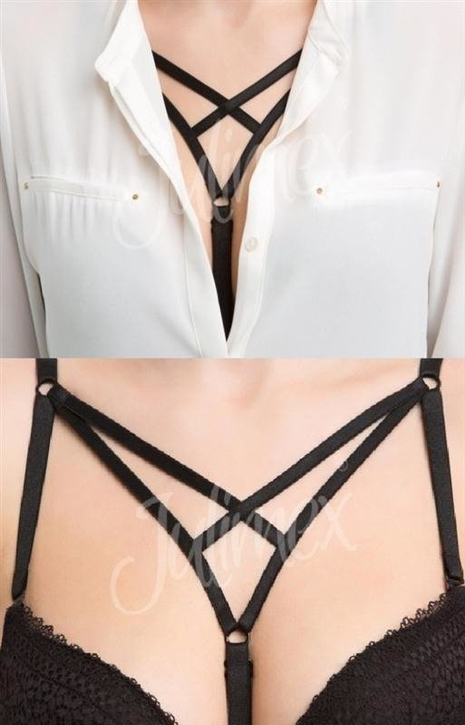 - Ozdobne dopinane ramiączka Julimex Cross. Zjawiskowe ramiączka z podwójnym paskiem przypinanym tuż nad biustem. Specjalnie do stanika z odpinanymi ramiączkami.
