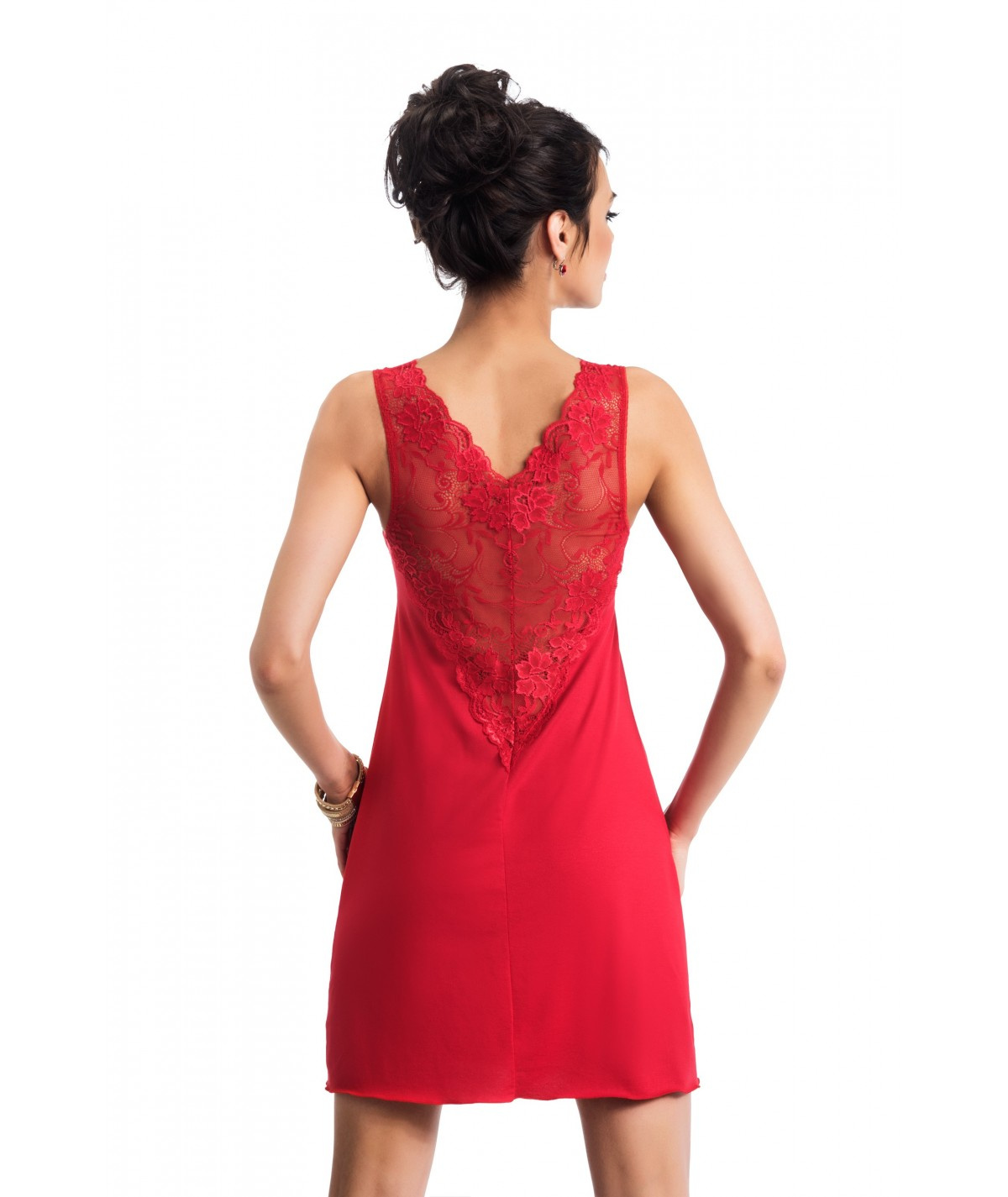 Koszula nocna Donna - Kristina. Efektowna koszulka damska wykonana z wysokiej jakości wiskozy z dodatkiem elastanu. Szerokie ramiączka i tył zdobi ażurowa koronka o kwiatowym motywie. Biust delikatnie podszyty materiałem. Lekko rozszerzana ku dołowi, długość przed kolana. Elegancka halka nocna. Skład: 90% wiskoza, 10% elastan.Szczegółowe dane