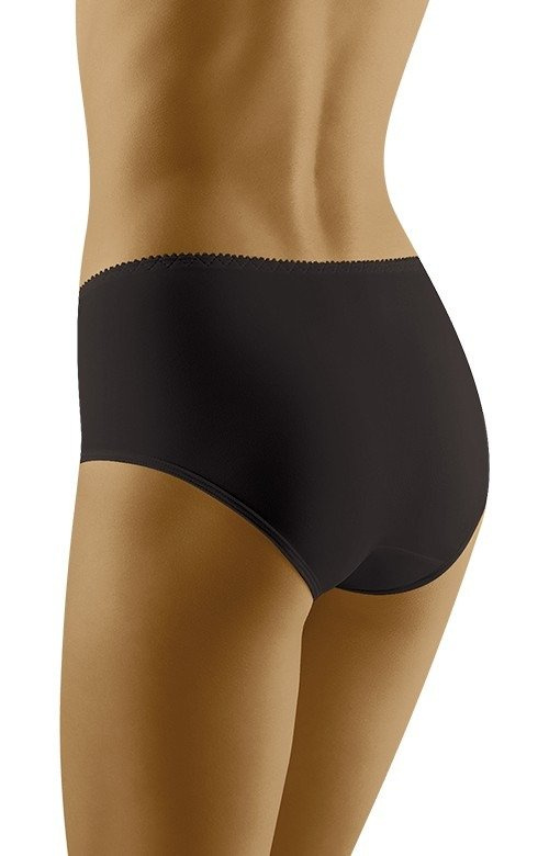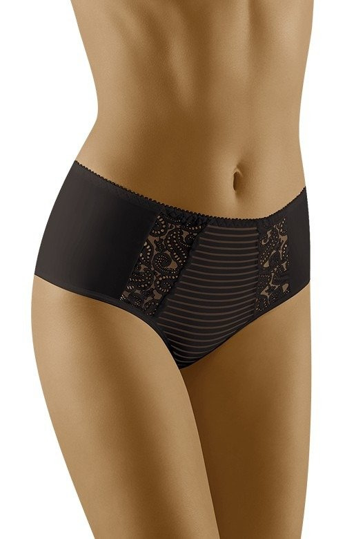 Wolbar Hula to model z microfibry o wysokim stanie. Przód fig w środkowej części zdobi tkanina w prążek a boki koronka o roślinnym motywie. Dzięki zastosowaniu mocnej i elastycznej siatki, która znajduje się pod dzianiną w paski efekt wyszczuplenia jest wzmocniony a brzuch wymodelowany. Tył fig jest zabudowany i gładki. W sprzedaży dostępny w dwóch odcieniach, klasycznej bieli i czerni w rozmiarach od S do XL. Skład: MICROFIBRA (Poliamid - 83%, Elastan 17%).