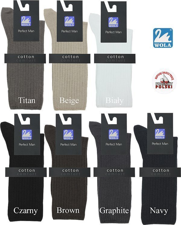 Skarpety męskie bawełniane. Płaskie szwy oraz specjalna konstrukcja ściągacza sprawia ,że skarpetki nie uciskają i są bardzo komfortowe. Dzięki niewielkiej zawartości elastanu skarpetki bardziej przylegają do stopy na całej długości.Szczegółowe dane