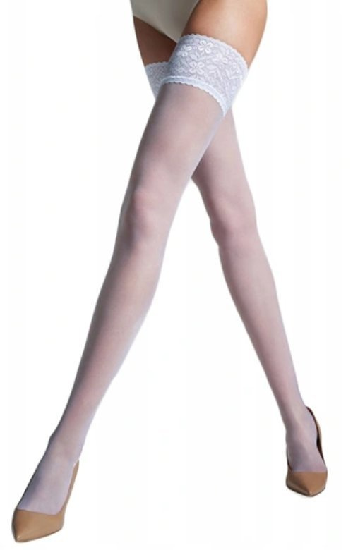 - Samonośne wykończenie: Pończochy zostały zaprojektowane z myślą o wygodzie – ich samonośny charakter eliminuje konieczność używania dodatkowych pasów do pończoch.