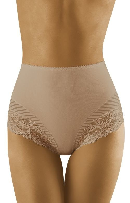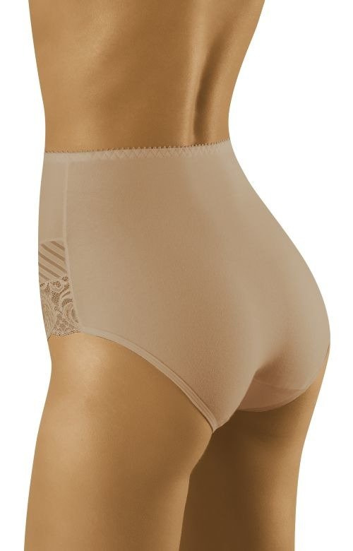 - Modelujące figi Wolbar Eco Ou. Figi posiadają wyższy stan dzięki czemu brzuch jest lekko spłaszczony. Dzięki zastosowaniu ślicznych koronkowych wstawek przy nogawkach z przodu są bardzo eleganckie.