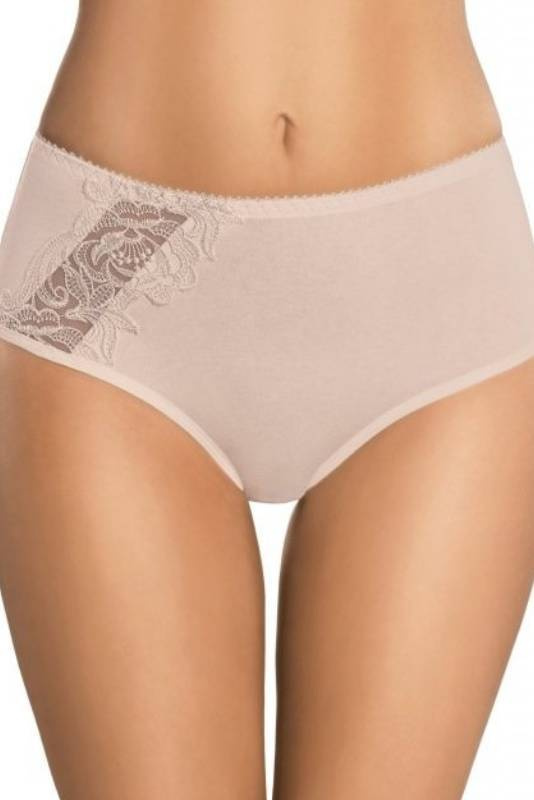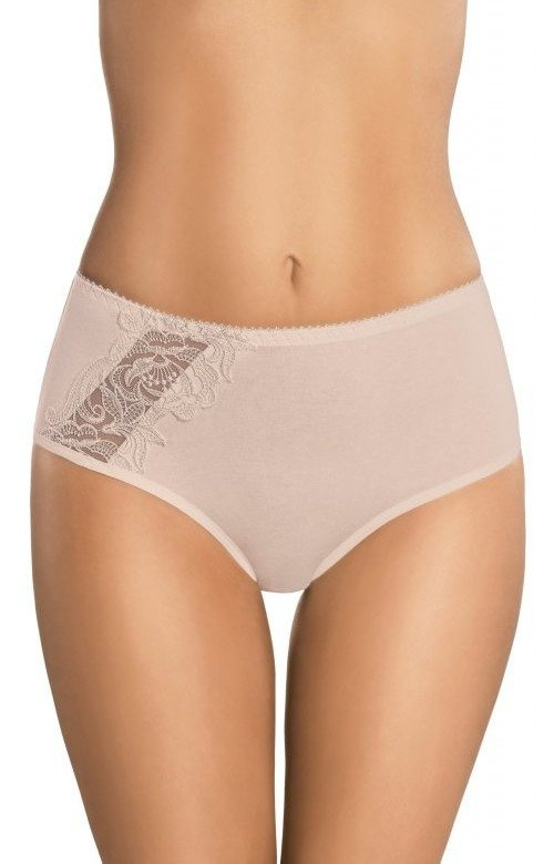 Figi damskie Gabidar model 068. Klasyczne damskie figi szyte z bawełny wysokogatunkowej z domieszką elastanu. Model idealnie przylega do sylwetki, dzięki czemu komfort jego użytkowania jest niezwykle wysoki. Przód fig po boku zdobi elegancka wstawka z koronki z dużym haftem z motywem roślinnym. Tył fig zabudowany i gładki. Model Gabidar 068 dostępny jest aż w trzech wariantach kolorystycznych: białym, beżowym i czarnym w rozmiarach od M do XXL. Skład 95% bawełna, 5% elastan.