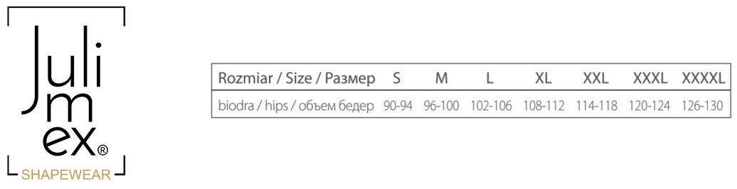 - Wyszczuplające, bezszwowe figi z wysoką talią Julimex 241, z bawełnianą wkładką , idealne pod obcisłe kreacje.Mają opatentowany system zapobiegający rolowaniu i zsuwaniu. Szyte w rozmiarach XS-2XL