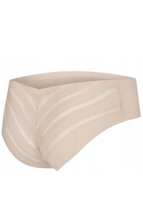 - Beżowe, przewiewne figi Julimex Joy, z przodu gładkie, z tyłu siateczka w paski.Pięknie układają się na pośladkach.