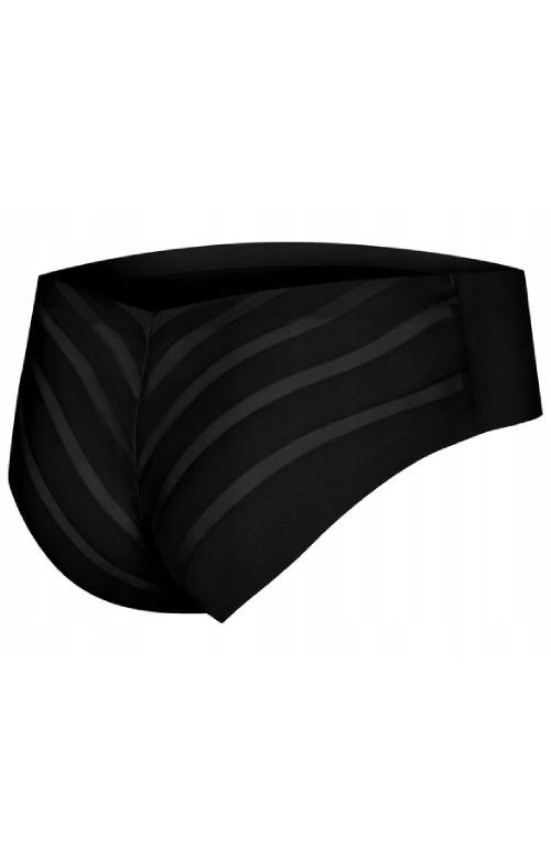 - Czarne, przewiewne figi Julimex Joy, z przodu gładkie, z tyłu siateczka w paski.Pięknie układają się na pośladkach.
