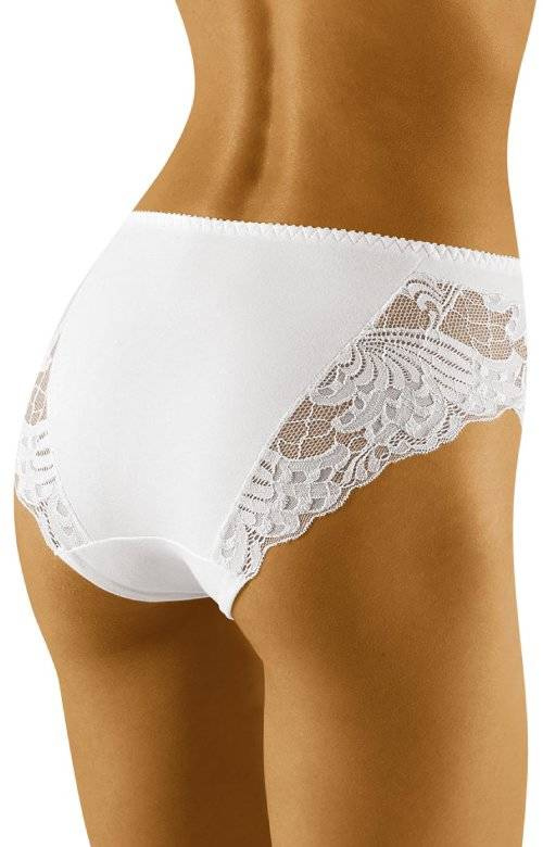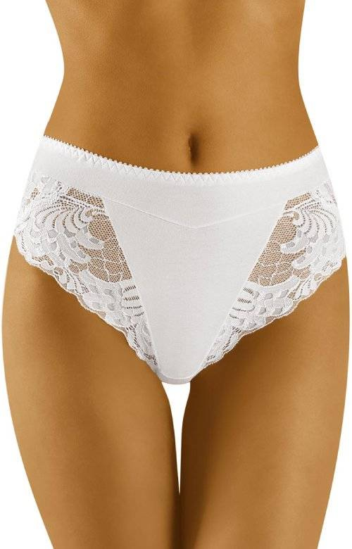 Bawełniane majtki damskie na co dzień. Pas i boki wykonane ze stylowej koronki. Podwyższony stan pozwala ukryć drobne mankamenty sylwetki. Tył gładki, nogawki wykończone koronką. Figi idealnie układają się na sylwetce i są bardzo wygodne. Skład: 90% bawełna, 7% elastan, 3% poliamid.Szczegółowe dane