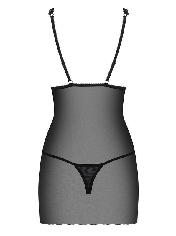 - Seksowna koszulka na ramiączkach Obsessive Lucita. Zmysłowa czarna krótka koszulka zdobiona na miseczkach oraz od odcięcia pod biustem na całej długości koronką z finezyjnym wzorem. Do koszulki dołączone pasujące stringi.