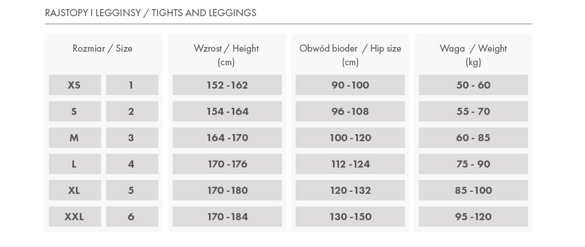 Rozmiar | Wzrost | Obwód bioder | Waga |