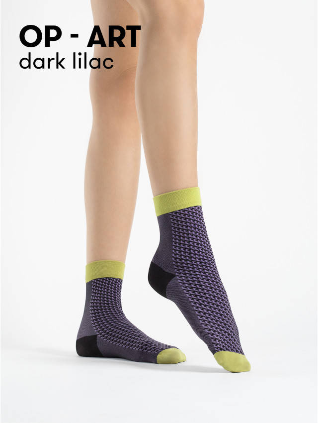 Fiore OP-ART 40DEN - skarpetki rajstopowe, których bazę zdobi drobny geometryczny wzór. Dla kontrastu w skarpetkach zastosowano ściągacz i część palców w energetycznych kolorach. Skład: 72% poliamid 20% prolen 8% elastan.Odkryj nowy wymiar komfortu z skarpetkami Fiore OP-ART 40DEN! Te wyjątkowe skarpetki w kolorze dark_lilac to perfekcyjne połączenie nowoczesnego designu z wysoką jakością materiałów. Wykonane z poliamidu, oferują niezwykłą miękkość oraz elastyczność, co sprawia, że idealnie dopasowują się do stopy. Zapomnij o niewygodnych skarpetkach – z Fiore poczujesz się lekko i swobodnie przez cały dzień!