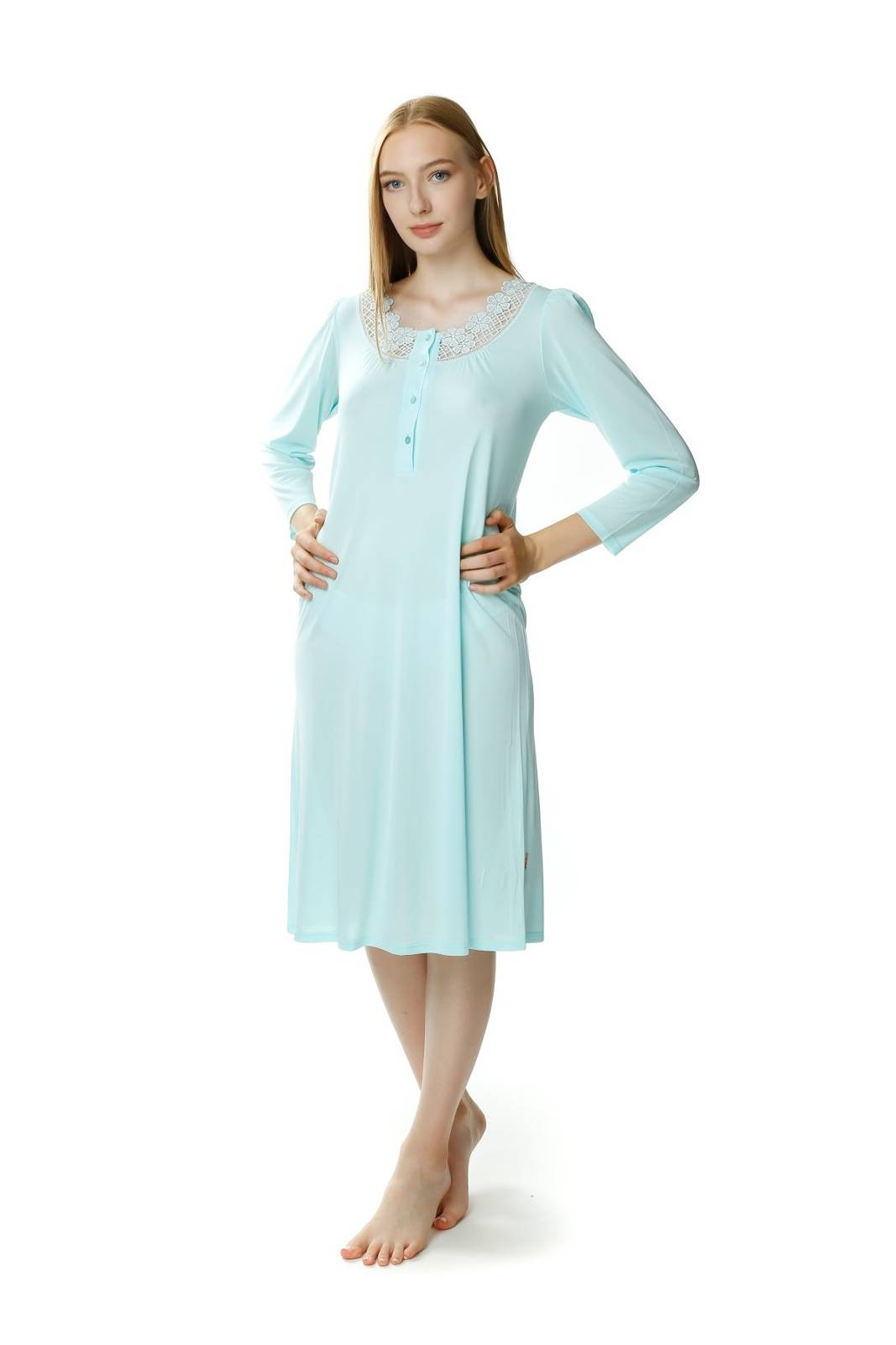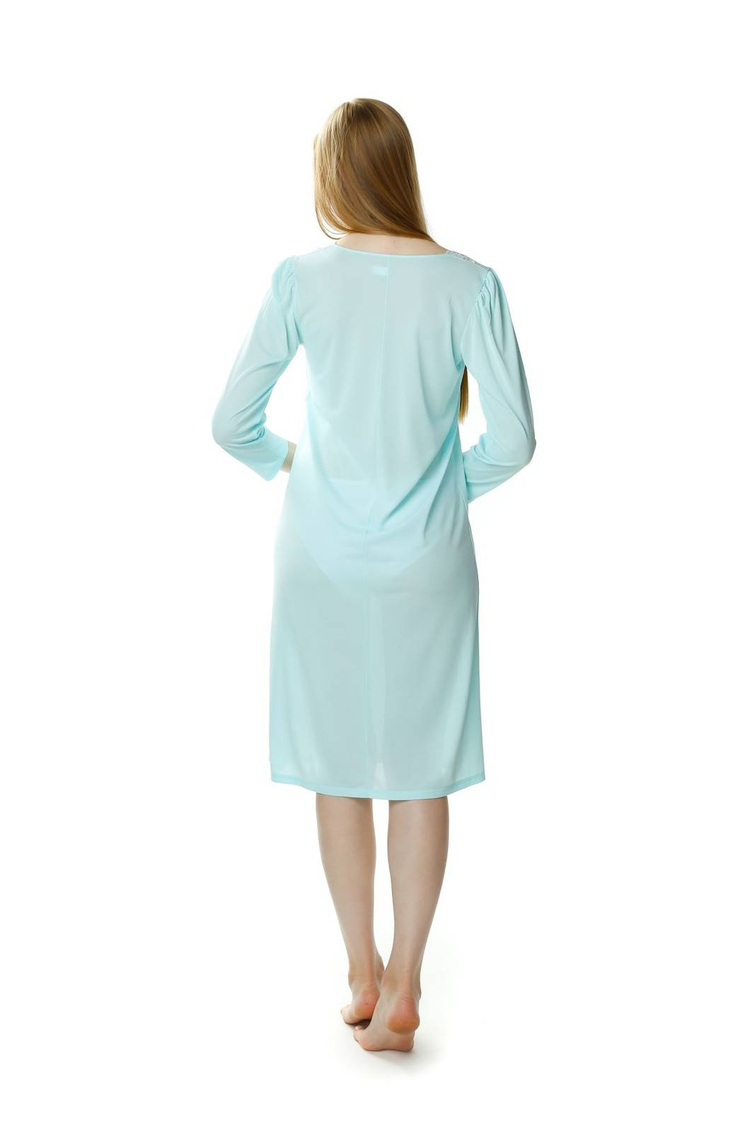 Koszula nocna Mewa 6126 Antonina. Koszula szyta z jedwabiu wiskozowego który jest antybakteryjny, antystatyczny, termoaktywny i ekologiczny. Dodatkowo, jedwab wiskozowy wchłania i oddaje pot. Koszula długości poniżej kolan. Zapinana na guziczki. Koszula występuje w rozmiarach od 38-58 dzięki czemu każda z Pań znajdzie idealny dla siebie rozmiar. Skład: 72% wiskozy i 28% poliamidu.Długa koszula nocna na guziczki Mewa 6126 Antonina to idealna propozycja dla kobiet ceniących sobie komfort i elegancję w nocy. Wykonana z wysokiej jakości jedwabiu wiskozowego Vistex, ta koszula nocna damska długą rękawem zapewnia przyjemność noszenia oraz doskonałą przewiewność, co czyni ją doskonałym wyborem na każdą porę roku. Kolor miętowy dodaje świeżości, a zarazem subtelności, a okrągły, rozpinany dekolt z guzikami sprawia, że model ten jest zarówno elegancki, jak i praktyczny. To doskonała koszula nocna damska ciążowa oraz świetny wybór dla Pań w większych rozmiarach, które pragną czuć się atrakcyjnie.