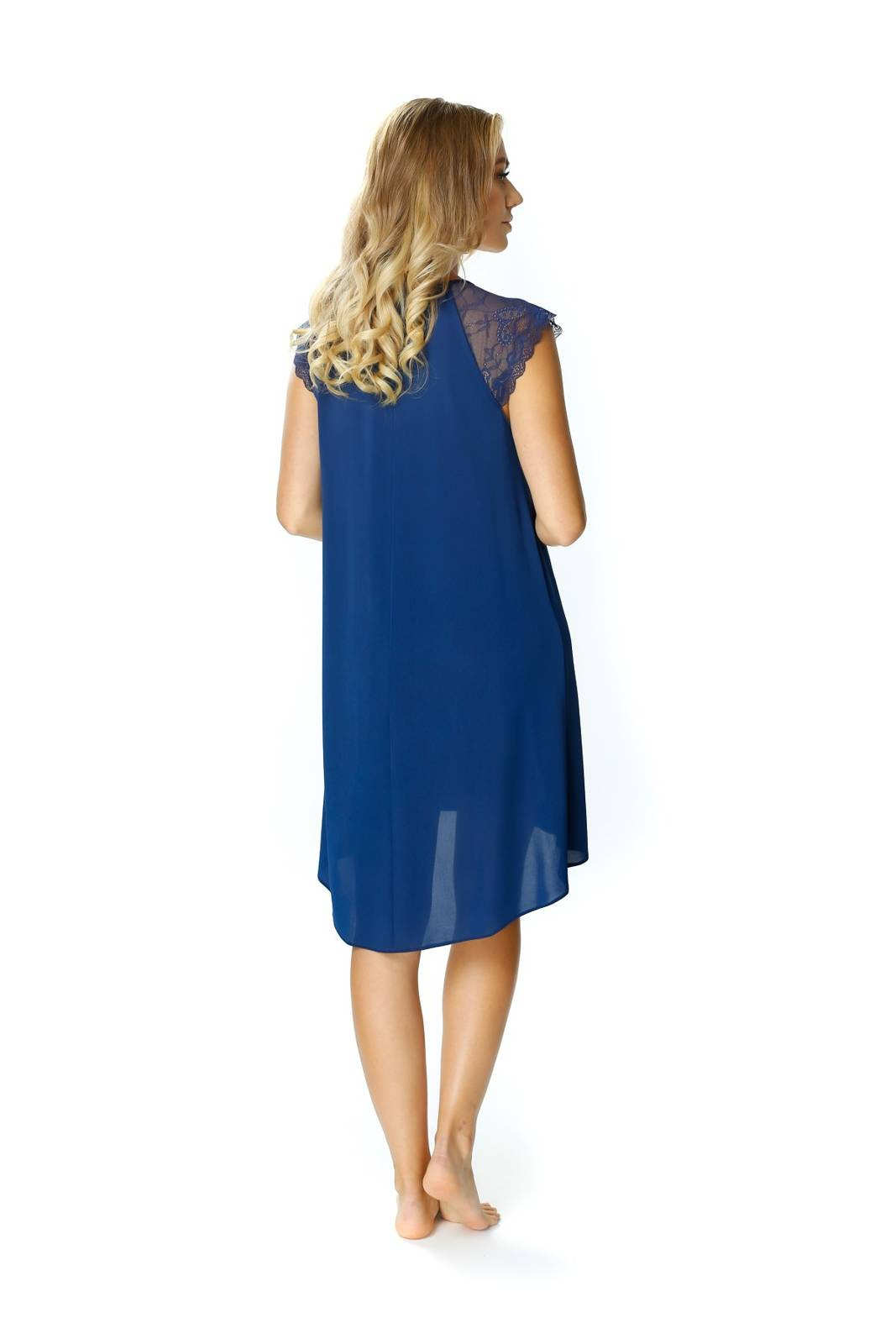 Jedwabna asymetryczna koszula nocna Mewa 6379 Mariola. Koszula z przodu długości do kolan tył dłuższy. Okrągły dekolt oraz koronkowe rękawki nadają jej delikatnego, lekkiego i romantycznego charakteru. Szyta z jedwabiu wiskozowego, który jest higroskopijny, termoaktywny i przepuszcza powietrze. Skład: 72% wiskoza, 28% poliamid.Jedwabna asymetryczna koszula nocna Mewa 6379 Mariola to wyjątkowy wybór dla wszystkich kobiet, które cenią sobie komfort oraz elegancję podczas snu. Stworzona z jedwabiu wiskozowego Vistex, ta koszula nocna damska zapewnia miłe doznania nie tylko dla ciała, ale również dla zmysłów. Dostępna w pięknym granatowym kolorze, idealnie sprawdzi się jako koszula nocna damska letnia, a jej krótki rękaw oraz długi fason nadają jej nietuzinkowego charakteru. Okrągły dekolt podkreśla kobiecość, a asymetryczny krój sprawia, że jest to model, który wpisuje się w najnowsze trendy modowe. Mewa, jako renomowana marka, zadbała o każdy detal, aby noszenie tej koszuli było czystą przyjemnością.