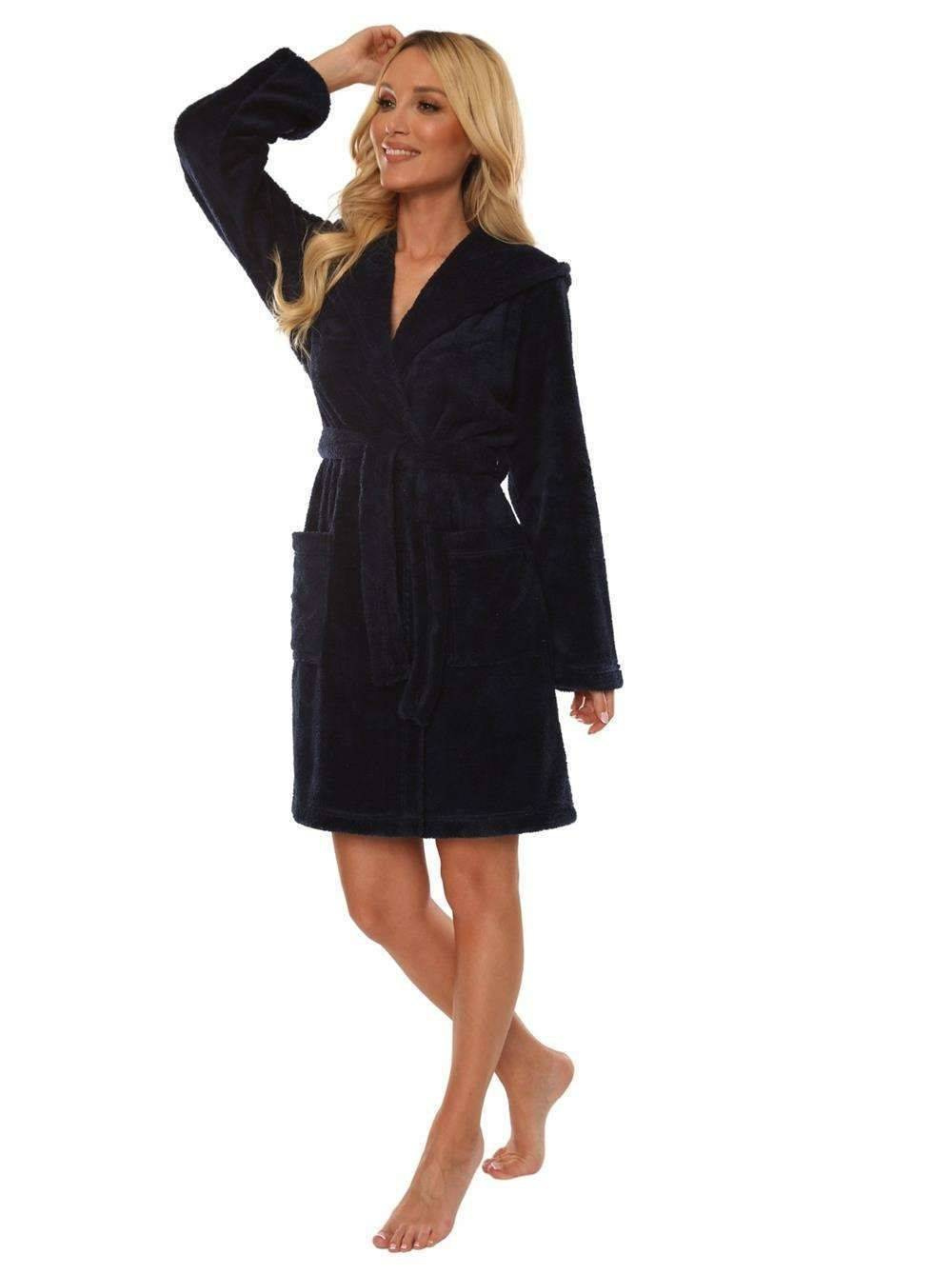 - Puchaty szlafrok damski De Lafense 806 to króciutki szlafrok z kapturem wiązany na pasek. Główną zaletą tego modelu jest cieplutka i miła w dotyku puchata tkanina. Aż przyjemnie się nią otulić.