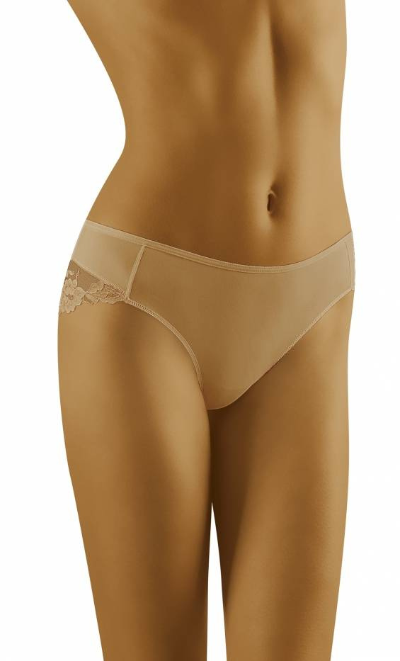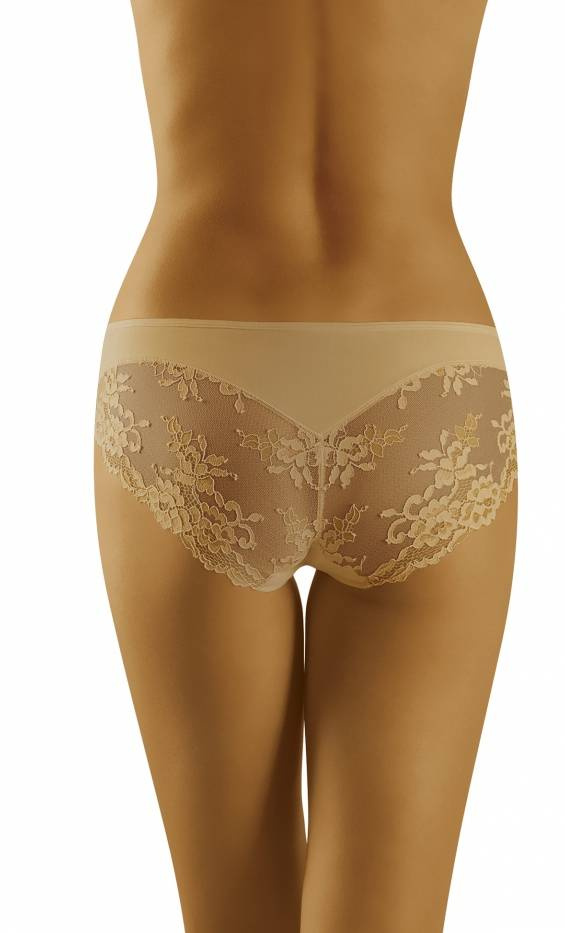 - Figi damskie Wolbar - Aria Figi wykonane z mikrofibry i kwiatowej koronki o obniżonej linii bioder. Płaskie obszycia zapewniają dyskrecję i komfort użytkowania. Skład: 83% microfibra (poliamid), 17% elastan.