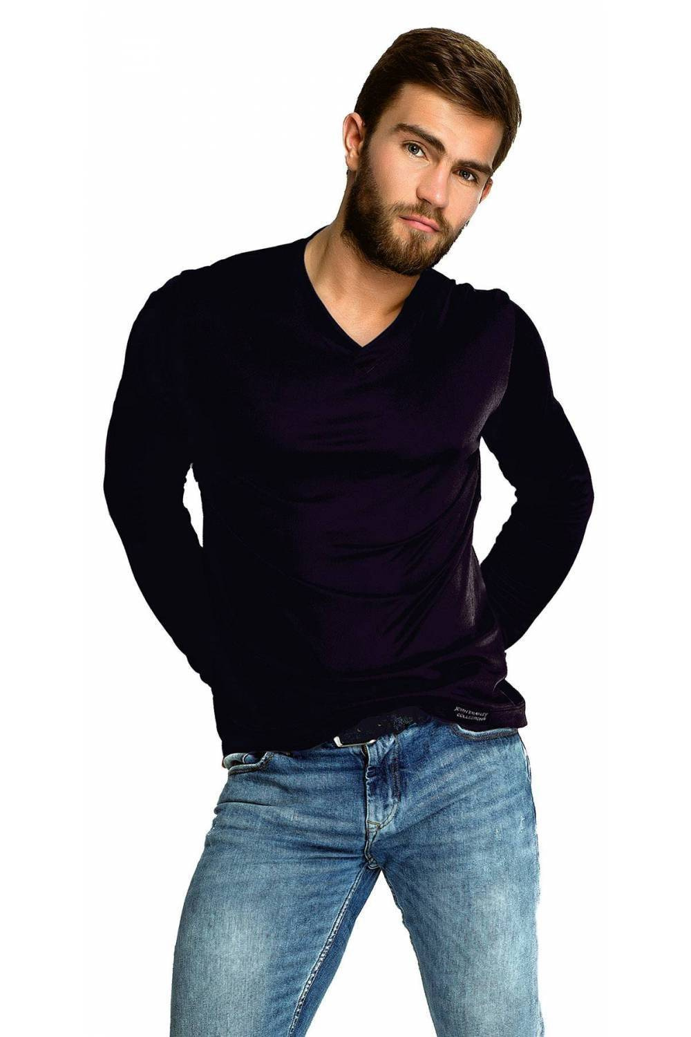 Koszulka męska z długim rękawem Mewa Karo z jedwabiu wiskozowego. Bluzka posiada dekolt w serek. Miękka i przyjemna w dotyku, przylegająca do ciała dobrze się układa. Bluzka będzie doskonała dla mężczyzny w każdym wieku. Bluzka z jedwabiu wiskozowego - materiał jest antybakteryjny, antystatyczny, oddychający. Wysoka przepuszczalność powietrza zapobiega nadmiernej potliwości. Bluzka odpowiednia dla alergików. Jedwab wiskozowy posiada właściwości antyalergiczne. Nie elektryzuje się, nie przykleja się do ciała, nie uczula i nie podrażnia skóry.Koszulka męska z długim rękawem Mewa 6128 Karo to idealna propozycja dla aktywnych mężczyzn, którzy cenią sobie komfort i styl. Wykonana z jedwabiu wiskozowego Vistex, ta koszulka zapewnia wyjątkową miękkość i przewiewność, co czyni ją doskonałym wyborem na każdy sezon. Jej gładki materiał oraz długi rękaw sprawiają, że jest to praktyczny element tej męskiej kolekcji. Czarne wykończenie dodaje elegancji, a sportowy krój z dekoltem w kształcie szpica sprawia, że świetnie sprawdzi się zarówno jako podkoszulek męski pod koszulę, jak i odzież na co dzień oraz do aktywności fizycznej.