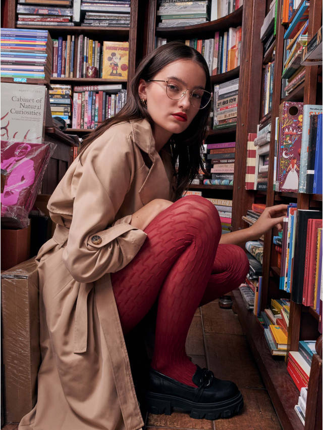 Geometryczny wzór rajstop to prawdziwy hit tego sezonu! Duże, wyraziste kształty, w kolorze cherry czerwonym, przyciągają wzrok i dodają charakteru każdej stylizacji. Te rajstopy nie tylko podkreślają kobiecą sylwetkę, ale również są doskonałym uzupełnieniem zarówno codziennych, jak i bardziej eleganckich outfitów. Doskonale sprawdzą się na Walentynki, dodając odrobinę romantyzmu do Twojej garderoby.