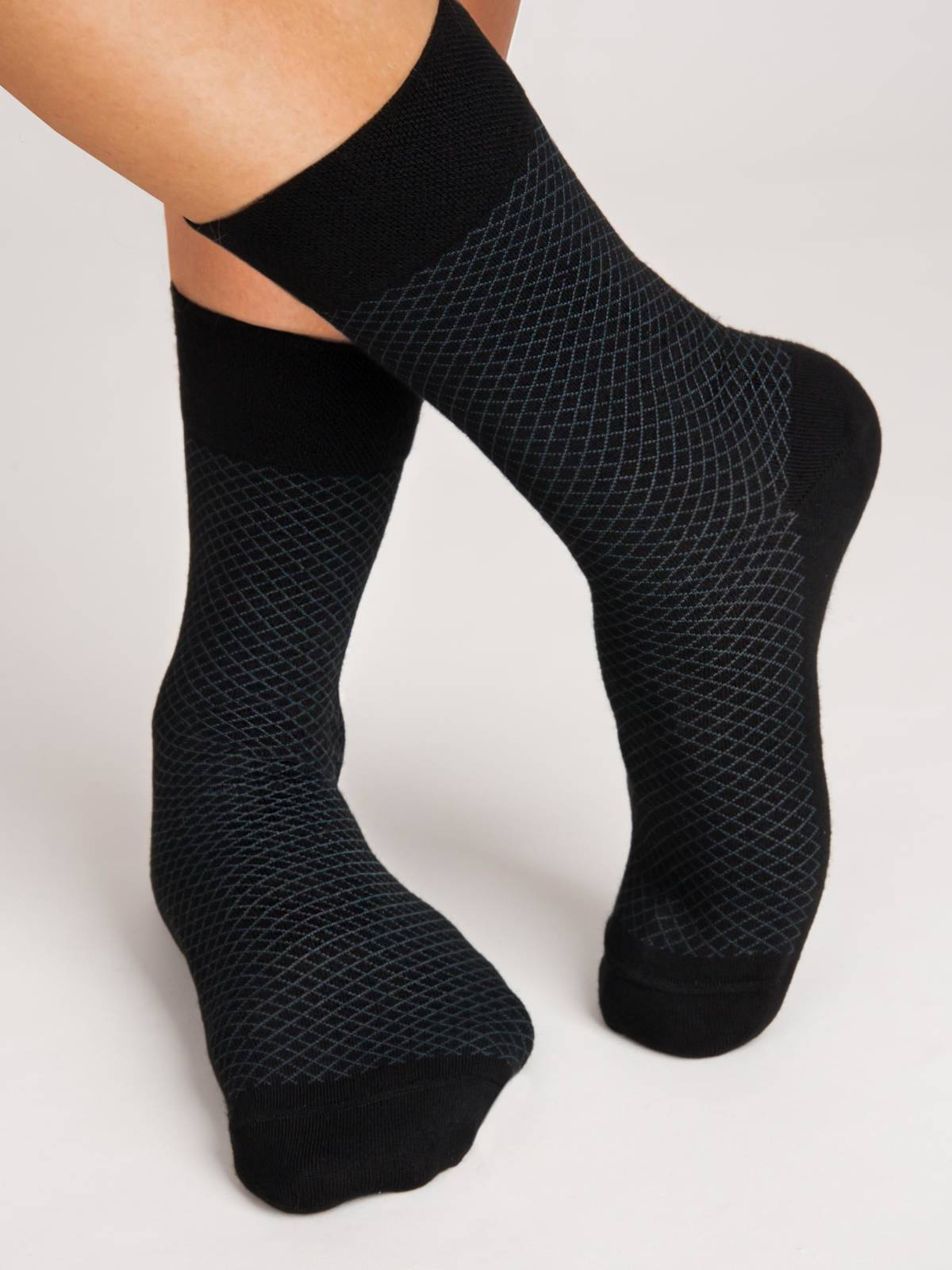 - Eleganckie męskie skarpety ze wzorem wykonane z włókna bambusowego.