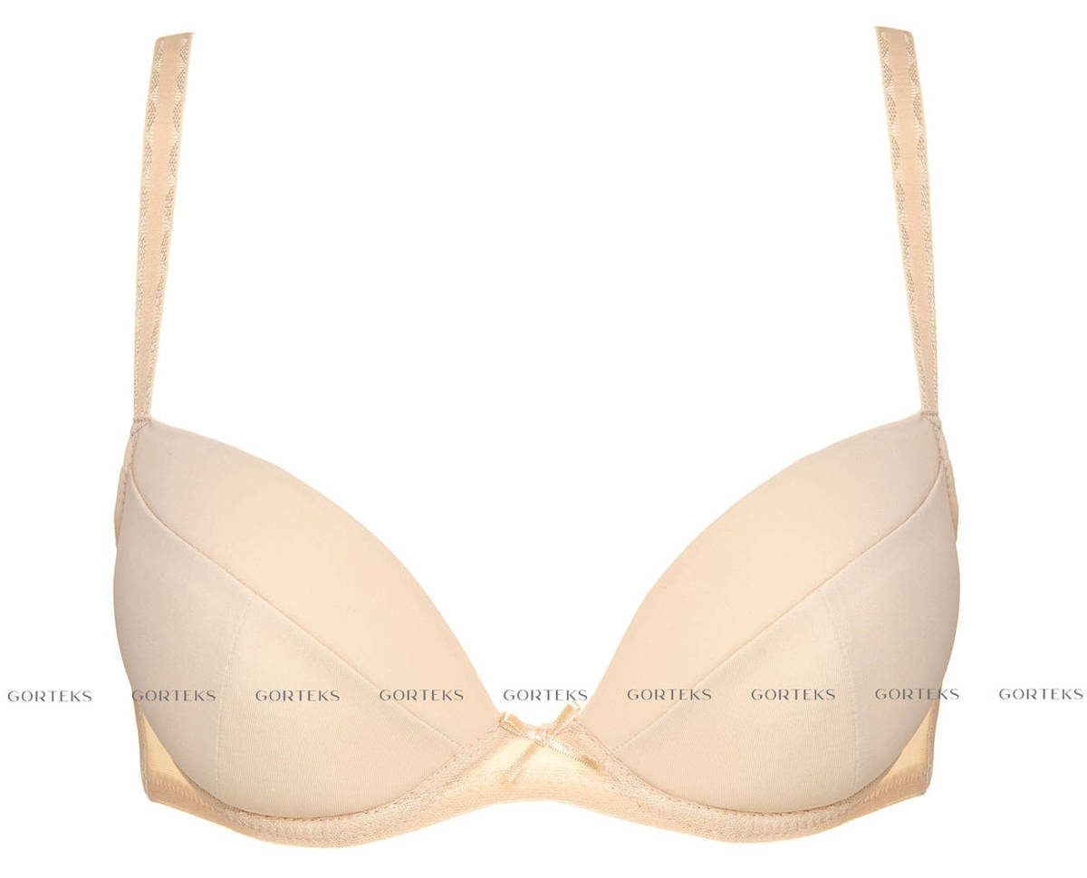 - Gładki biustonosz o kroju push-up pod cienkie bluzki i koszulki. Ramiączka regulowane, nieodpinane. Biustonosz do głębokich dekoltów.