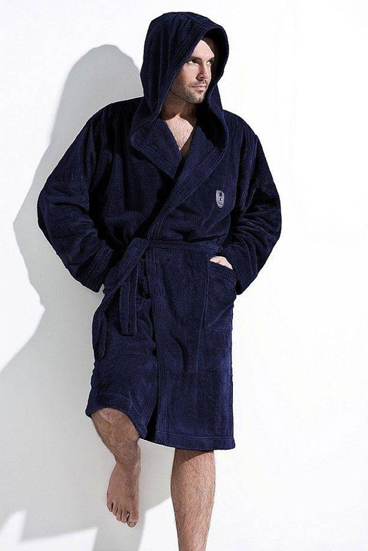 Wygodny męski szlafrok przed kolano, wiązany, z kapturem i praktycznymi kieszeniami. Uszyty ze specjalnego miękkiego materiału wellursoft, antyalergicznego i antybakteryjnego, który świetnie dopasowuje się do sylwetki, łatwo składa i przechowuje więc świetnie sprawdzi się w podróży, na basenie czy w siłowni. Szlafrok dla aktywnych mężczyzn, elegancji dodaje haft na piersi oraz ozdobne przeszycia. Skład: 100% poliesterSzlafrok męski z kapturem L&L IWO w eleganckim kolorze navy to idealne rozwiązanie dla każdego mężczyzny, który ceni sobie komfort i styl w domowym zaciszu. Wykonany z wysokiej jakości materiału wellursoft, ten szlafrok męski łączy w sobie przyjemność noszenia z modnym wyglądem. Dzięki swojej gładkiej struktury materiału, doskonale sprawdzi się nie tylko wieczorami po kąpieli, ale także podczas relaksu w domowym spa.