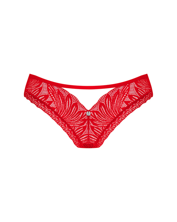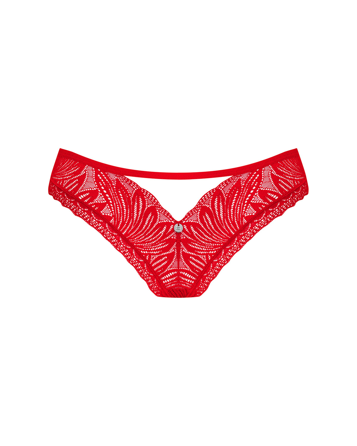 - Czerwone wygodne figi, wykonane z koronki. Model z przodu posiada kuszące wycięcie.