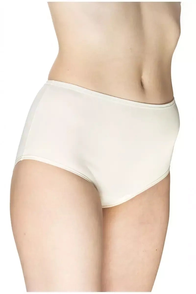 Gładkie proste figi damskie z wysokim stanem i wciąganą gumką. Idealny wybór dla pań szukających klasycznych wysokich fig o prostym kroju. Gładkie figi damskie Eliza mają szerokie boczki, w pełni zakrywają brzuch i uda. Majtki damskie uszyte są z jedwabiu Vistex, cienkiego materiału o właściwościach antystatycznych, dzięki czemu nie elektryzują się i pozostają niewidoczne nawet pod obcisłą odzieżą. Są wspaniałą opcją jako bielizna pod sukienkę, spódnicę, czy materiałowe spodnie. Wykonane z jedwabiu wiskozowego 72% wiskoza, 28% poliamid.Klasyczne białe majtki damskie z wciąganą gumką Mewa 6340 Eliza to doskonały wybór dla kobiet, które cenią sobie wygodę i elegancję. Te figi damskie od renomowanej firmy Mewa wyróżniają się subtelnym stylem oraz jakością wykonania. Model 86340-ELIZA-BIAŁY został stworzony z myślą o kobietach, które szukają wysokiego stanu i dużych rozmiarów. Wykonane z jedwabnej wiskozy Vistex, zapewniają miękkość i przyjemność noszenia na co dzień. Gładka powierzchnia oraz krój midi sprawiają, że te majtki damskie doskonale dopasowują się do sylwetki, podkreślając jej atuty.