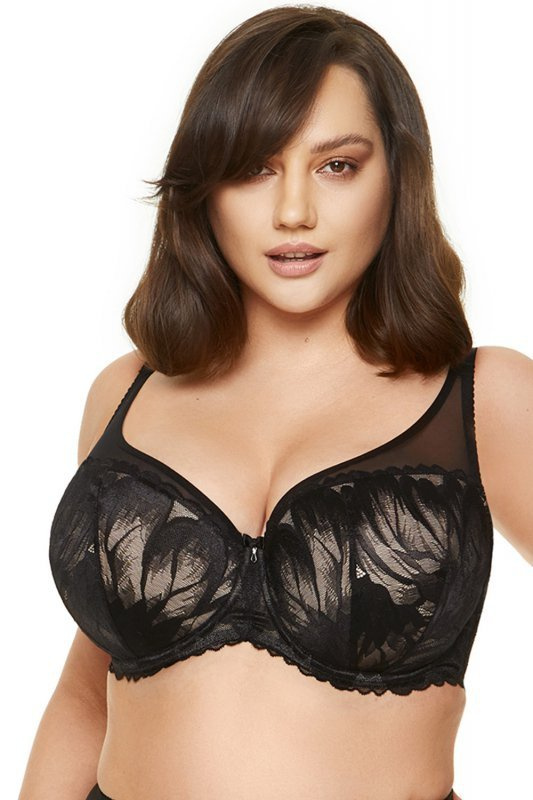 Bardzo dekoracyjny i ozdobny usztywniany biustonosz .Doskonały dla biustów średnich i dużych, szczególnie tych jędrnych i pełnych. Sprawdzi się przy bardziej zakrytych dekoltach. Unosi piersi, zbiera do przodu i nadaje im zaokrąglony kształt. Miseczki wykonane z cienkiej pianki gorseciarskiej, powleczonej koronką, dzięki czemu biustonosz doskonale dopasowuje się do kształtu piersi. Tył wykonany z koronki wzmocnionej tiulem. Dla zapewnienia komfortu podczas użytkowania wewnętrzna część miseczek wyściełana została przyjemną dla skóry bawełną ze standardem OEKO-TEX®, dzięki czemu biustonosz jest przyjazny dla skóry wrażliwej. Ramiączka odpinane, regulowane na całej długości. Skład: 65% poliamid , 20% poliester , 10% bawełna , 5% elastan.