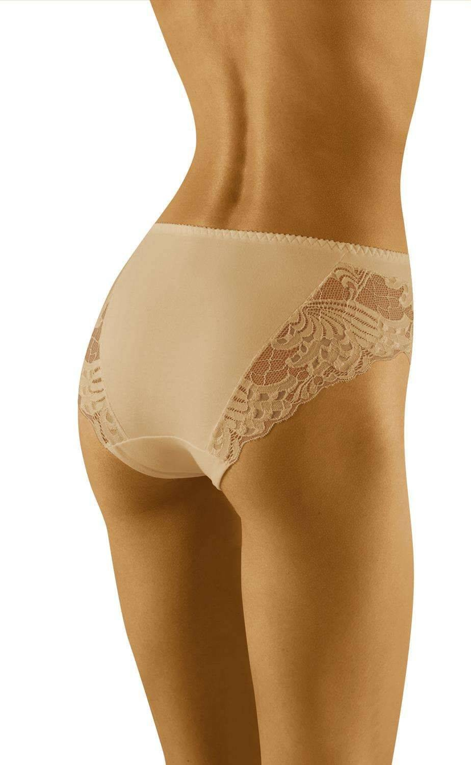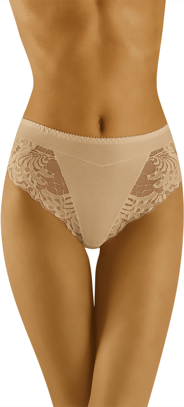 Bawełniane majtki damskie na co dzień. Pas i boki wykonane ze stylowej koronki. Podwyższony stan pozwala ukryć drobne mankamenty sylwetki. Tył gładki, nogawki wykończone koronką. Figi idealnie układają się na sylwetce i są bardzo wygodne. Skład: 90% bawełna, 7% elastan, 3% poliamid.Szczegółowe dane