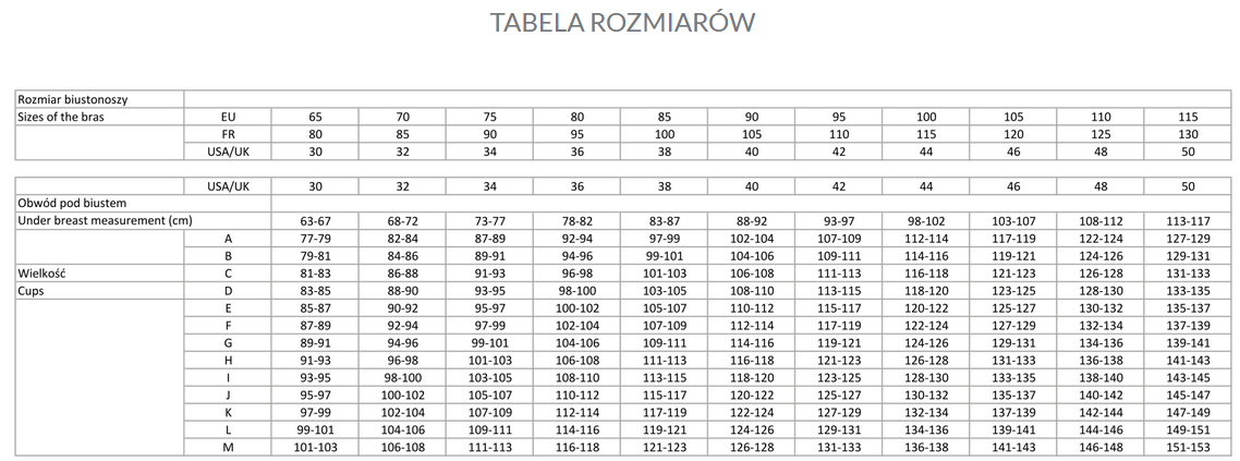 Rozmiar | Obwód pod biustem [cm] | Obwód w biuście [cm] |