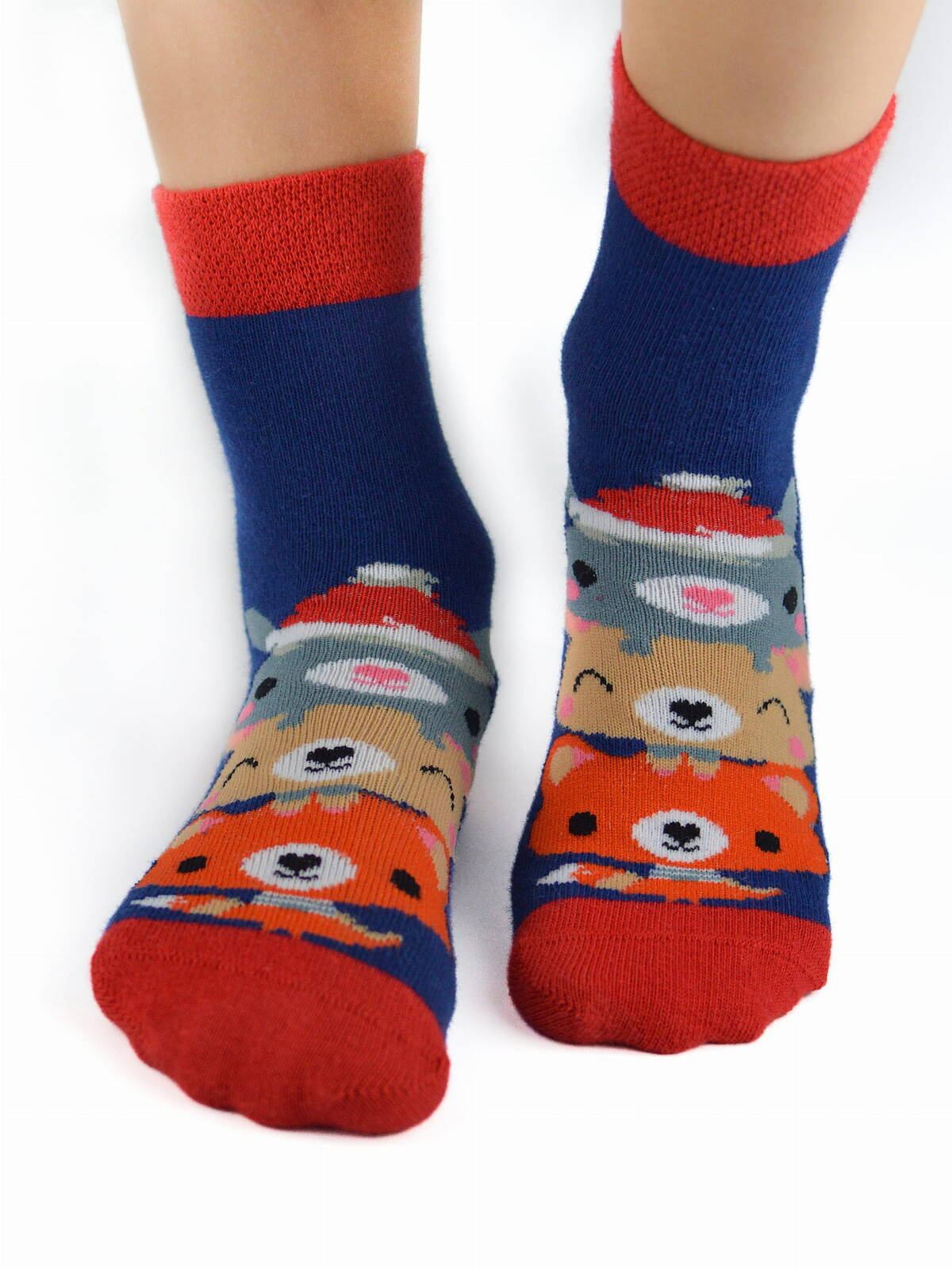 Śmieszne, świąteczne skarpetki dla dzieci. Wygodne, bawełniane skarpetki dziecięce, z kolorowym wzorem świątecznym, idealne na prezent na Mikołajki lub pod choinkę. Skład:80% bawełna, 18% poliamid, 2% elastanOdkryj magiczny świat świątecznych skarpetek dziecięcych XMAS Misie od Noviti! Te urocze skarpetki będą nie tylko doskonałym dopełnieniem każdej zimowej stylizacji Twojego dziecka, ale również zapewnią mu wyjątkowy komfort i ciepło. Wykonane z wysokiej jakości bawełny, stanowią idealny wybór na chłodne dni, oferując miękkość i przyjemność noszenia.