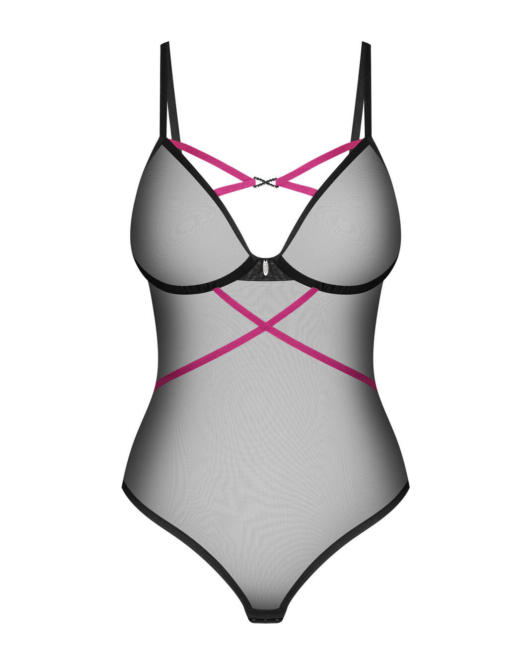 - Ultra seksowne body wykonane z tiulu z różowym akcentem.