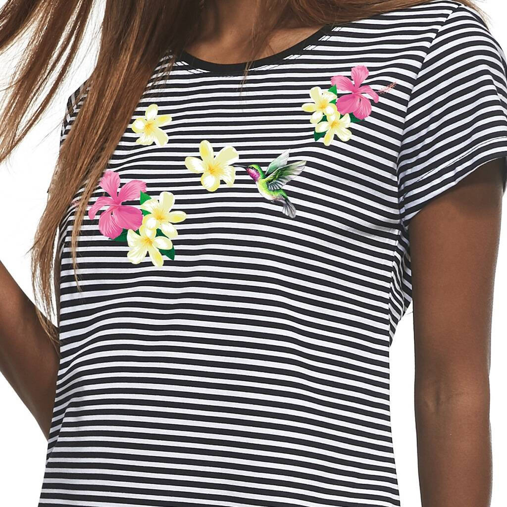 Bawełniana koszula nocna na krótki rękaw. Długość do kolan z przodu nadruk. Koszula o luźnym swobodnym kroju. Dekolt okrągły, z rozporkami po bokach. Skład: 100% bawełna.Szczegółowe dane