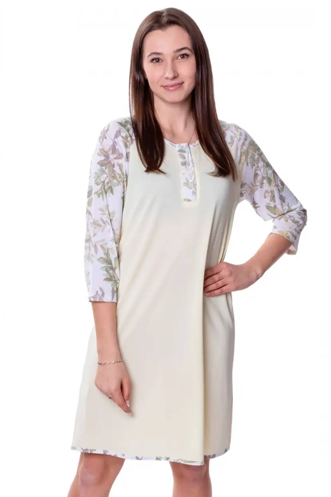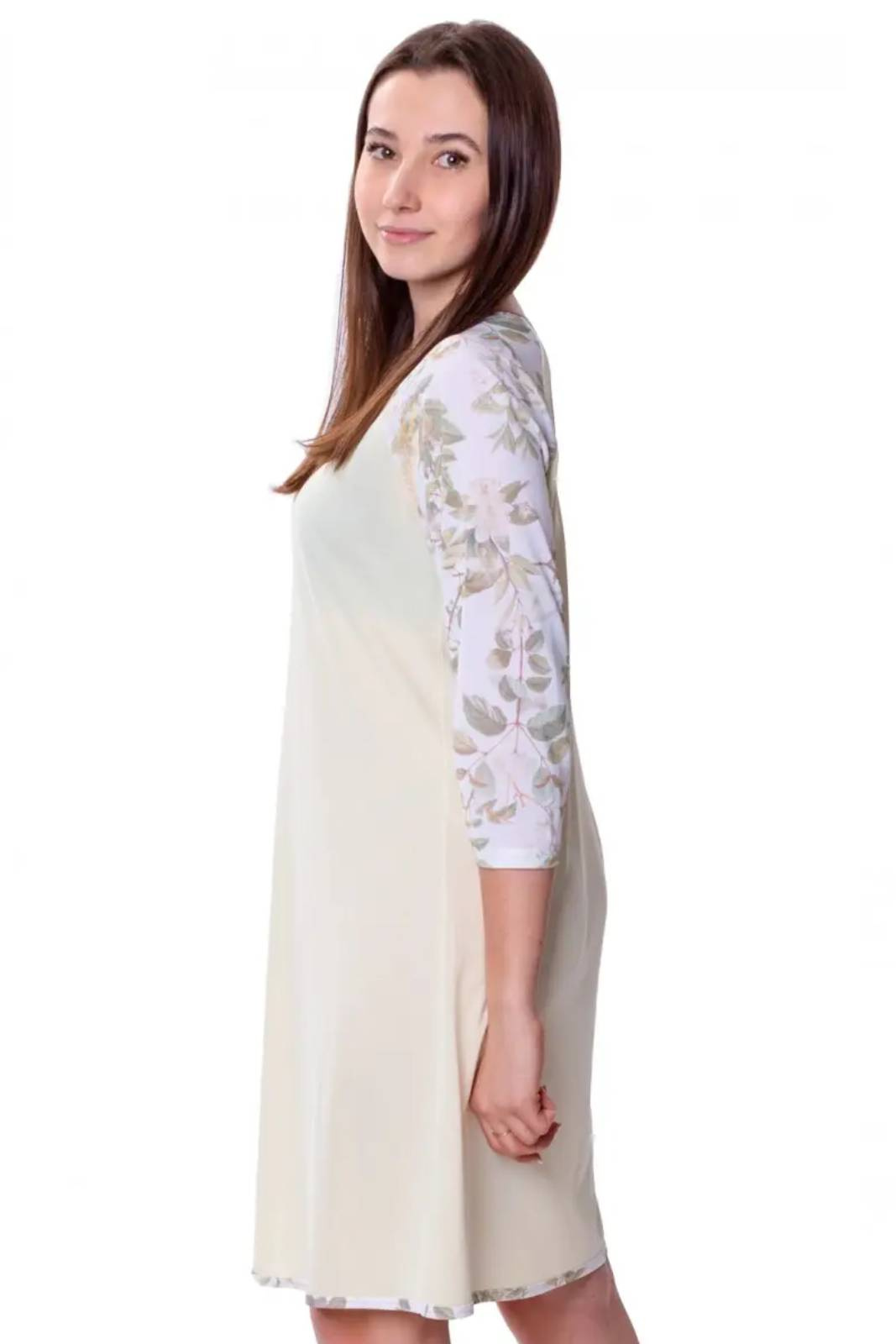 - Koszula nocna z 3/4 rękawem, za kolano, o luźnym kroju. Występuje w rozmiarach 40-50