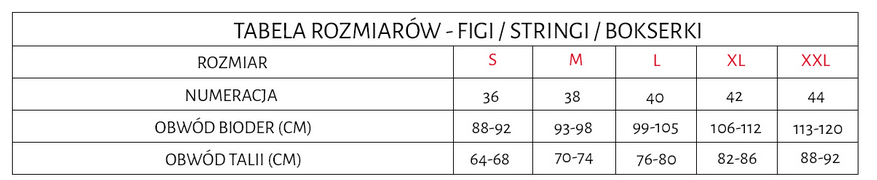 Rozmiar | Obwód w talii [cm] | Obwód bioder [cm] | Numeracja |
