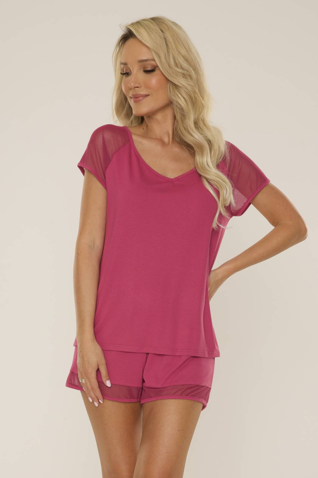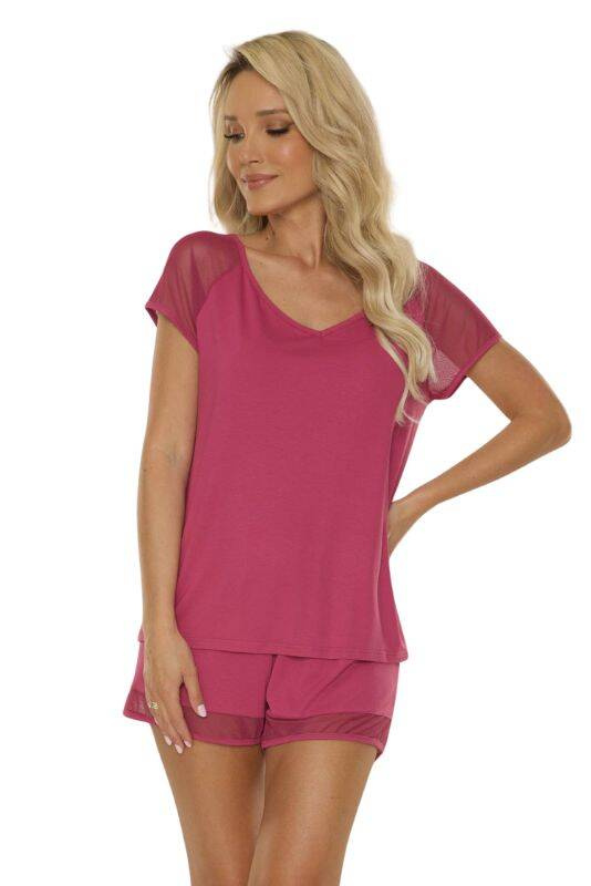 Letnia piżama damska z krótkimi spodenkami De Lafense 766 Caramel fuksja to doskonały wybór dla każdej kobiety, która ceni sobie nie tylko wygodę, ale także elegancki wygląd w sypialni. Dzięki połączeniu wiskozy i modnego koloru fuksji, ten zestaw gwarantuje nie tylko maksymalny komfort, ale także subtelny urok, który sprawia, że każda noc staje się przyjemnością.