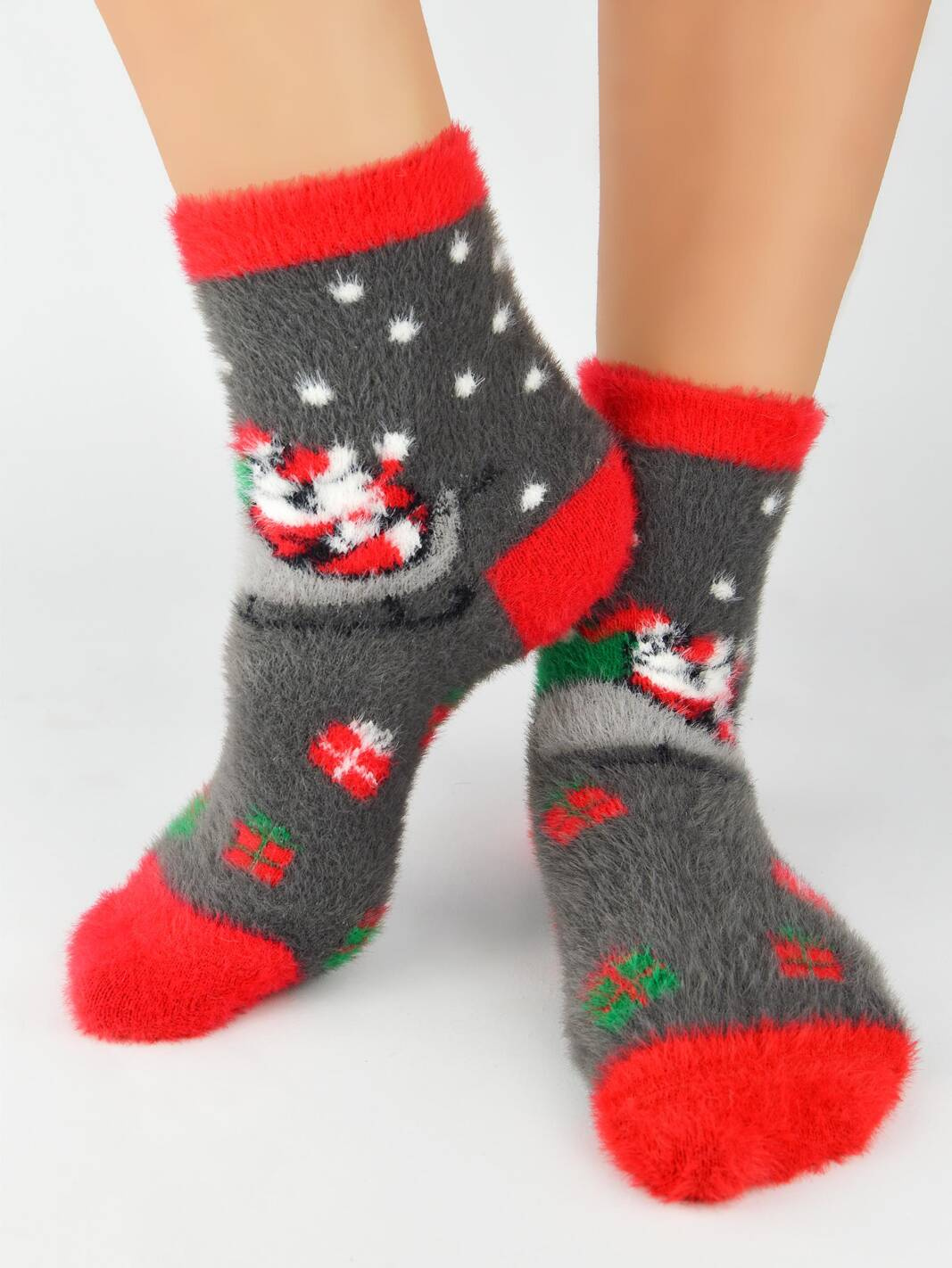 Wprowadź odrobinę radości i komfortu do swojej garderoby z skarpetkami puchatymi XMAS Mikołaj szare - Noviti! Stwórz niezapomniane chwile, wyglądając stylowo i czując się wyjątkowo!