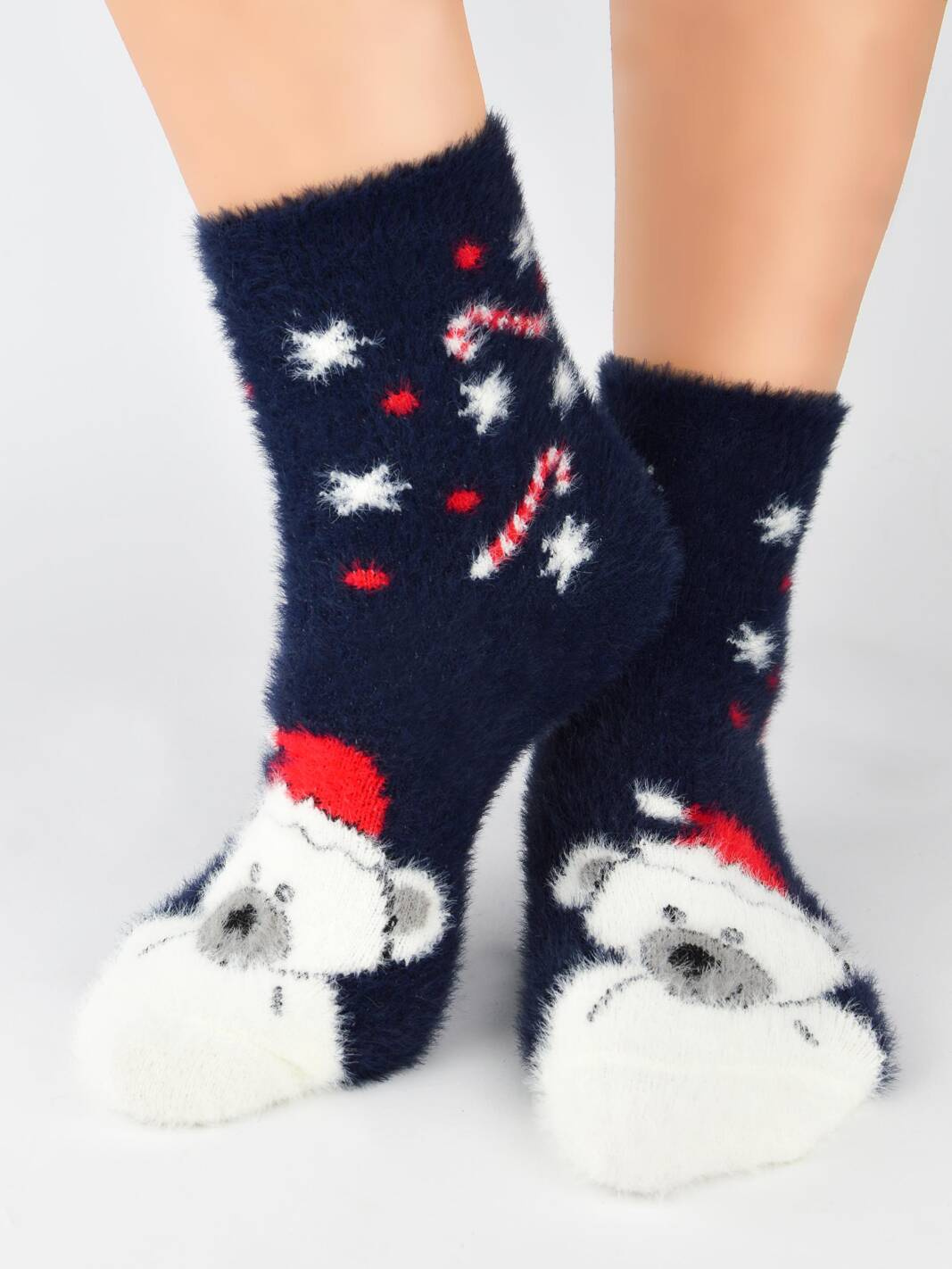 Skarpety puchate damskie XMAS miś granat - Noviti to idealne połączenie komfortu, ciepła i odrobiny świątecznego uroku. Te wyjątkowe skarpety zostały stworzone z myślą o wszystkich kobietach, które pragną poczuć się naprawdę wyjątkowo podczas zimowych wieczorów.
