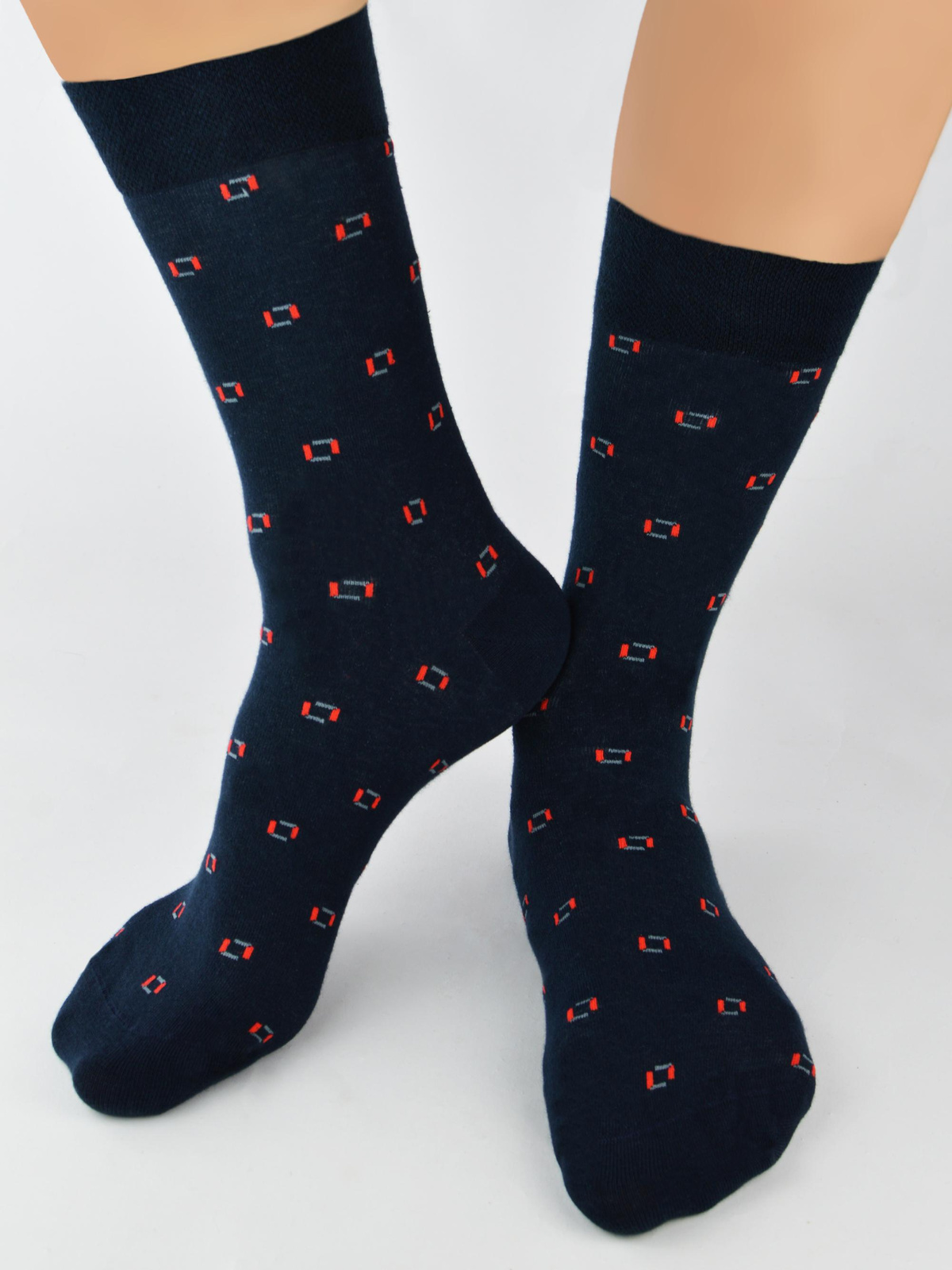 - Stylowe skarpetki męskie z geometrycznym wzorem. Eleganckie modne wzorzyste skarpetki męskie.