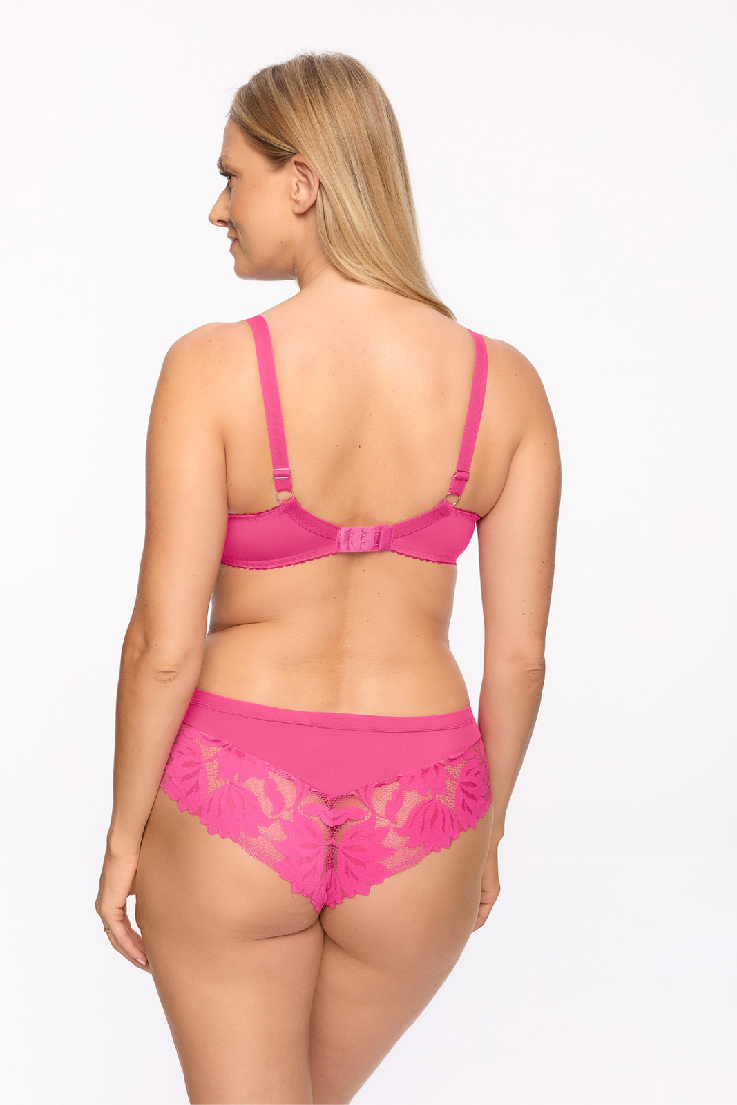 Biustonosz dostępny w soczystym odcieniu fuksji, który doda odrobinę energii do każdej stylizacji. Jego konstrukcja - model Gaia S9 - sprawia, że doskonale dopasowuje się do kształtu ciała, podkreślając atuty sylwetki. Dzięki zastosowaniu fiszbin bocznych, biustonosz zapewnia doskonałe wsparcie, jednocześnie pozostając niezwykle wygodnym w noszeniu.