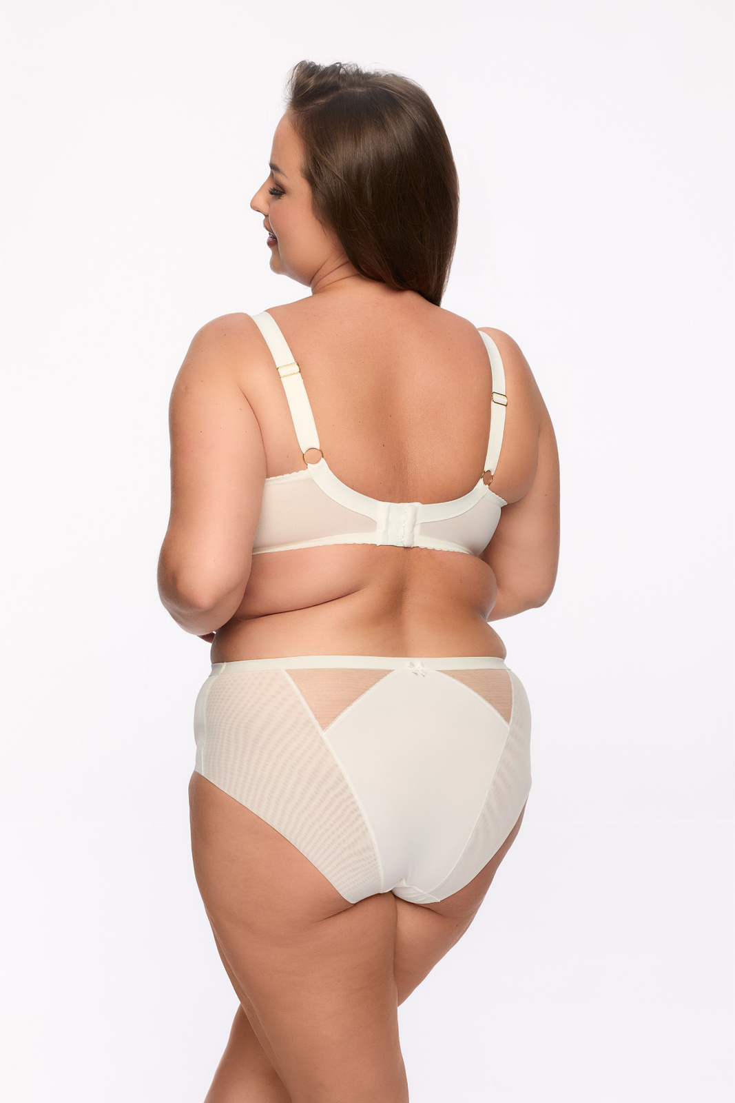 Biustonosz Laila Maxi to piękny, półusztywniany model w kolorze ecru, który doskonale współgra z kolorem skóry. Doskonałe połączenie koronki i stabilnego tiulu podkreśla kształty i świetnie utrzymuje biust. Dodatkowe ozdobne paseczki są odpinane. Obwód uszyty ze stabilnej Lycry.