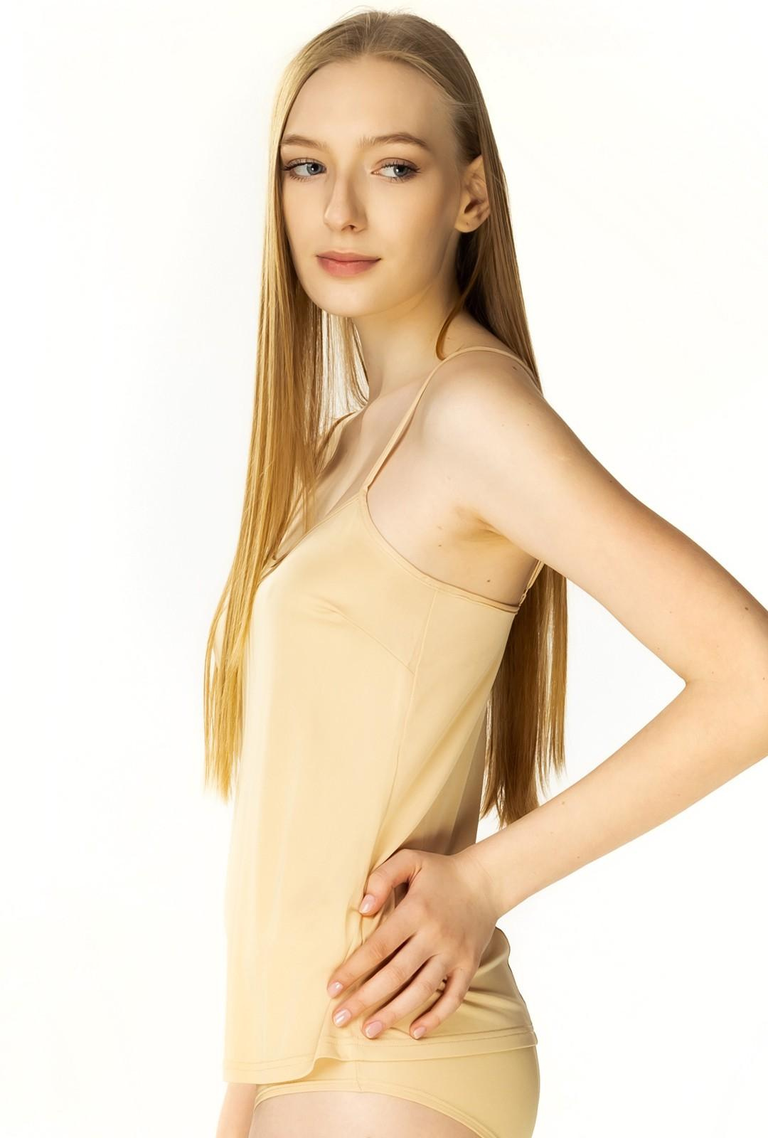 - Gładka koszulka damska Ofelia na regulowanych ramiączkach to nieodzowny element w damskiej szafie. Wykonana jest z ekologicznego materiału, bezpiecznego nawet dla osób z problemami skórnymi ze względu na swoje właściwości hipoalergiczne.