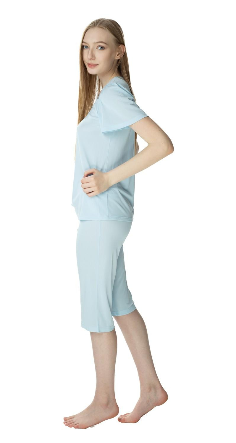 - Komplet dwuczęściowy: Składa się z bluzki z krótkim rękawem oraz spodni 3/4, co zapewnia idealne połączenie stylu i wygody.